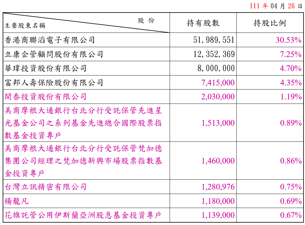 前十大股東