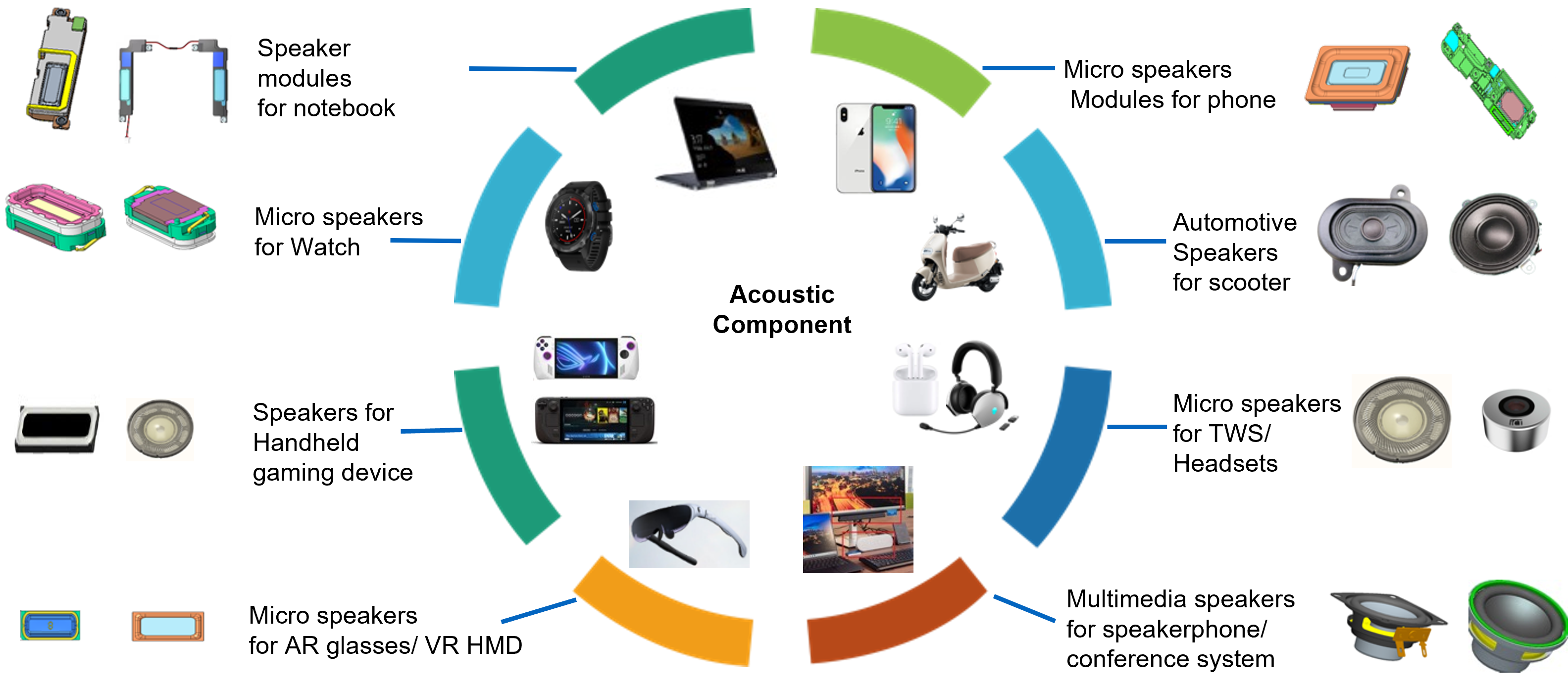 宣德科技在聲學產品(藍牙耳機、智慧音箱、聽力輔具等)領域具備豐富經驗。整合聲學腔體、麥克風、揚聲器單元、PCBA 等精密組件,透過自動化組裝線確保一致性與低瑕疵率。內建聲學校準與頻響測試系統,可於生產線即時驗證音質表現。客戶可獲得高效率、高音質、高可靠度的整機解決方案。
