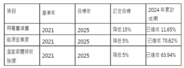 我們通過數據分析,制定了有效減少能源消耗和溫室氣體排放的行動方案,2024年汰換三台變頻冰⽔機,年節電達 47,880 kWh,年減碳效益約 39 噸 CO₂e,並定期實施節能教育訓練與內部設備優化作業,全面推進節能減碳⽂化。
